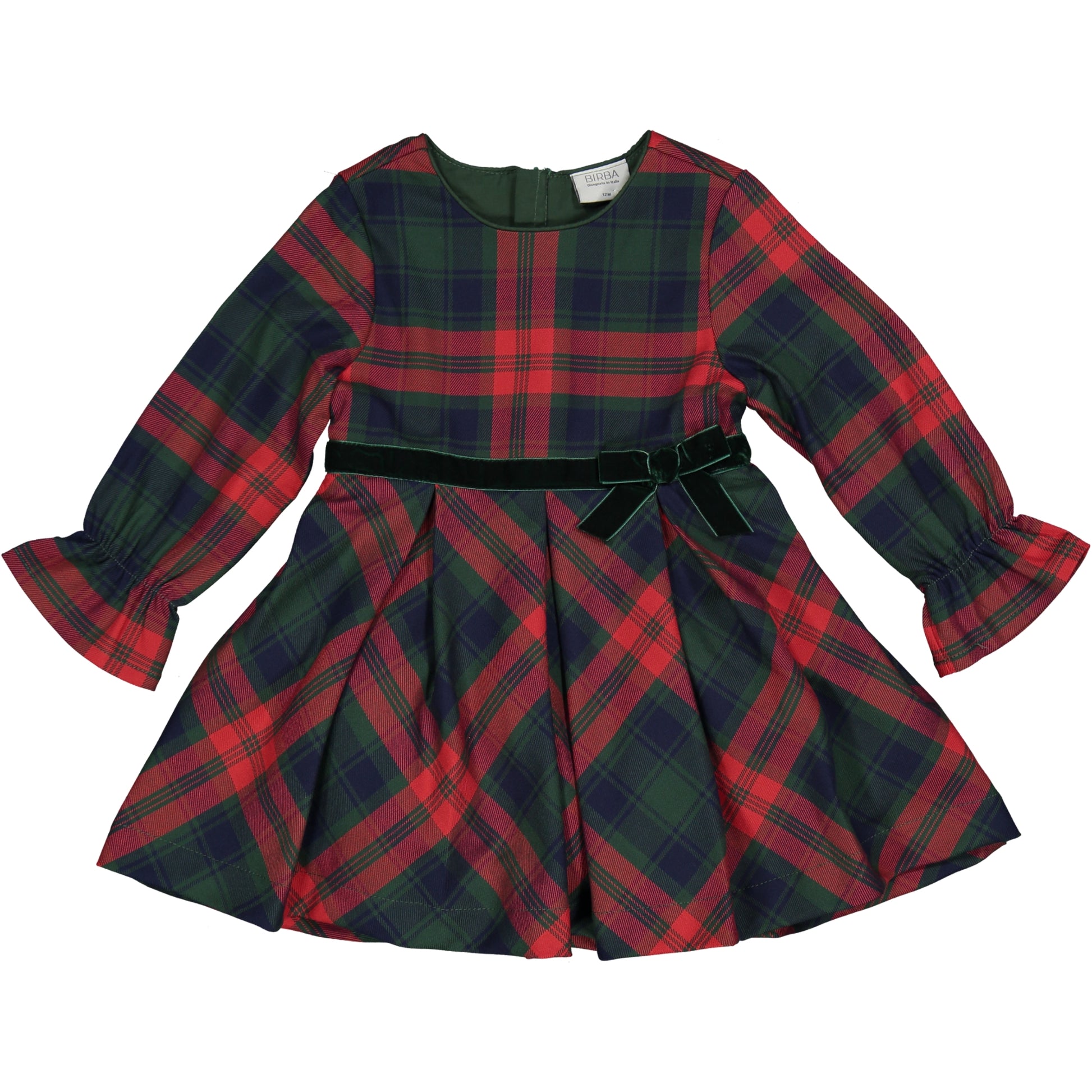 Abito maniche lunghe in tessuto stretch a fantasia scozzese .