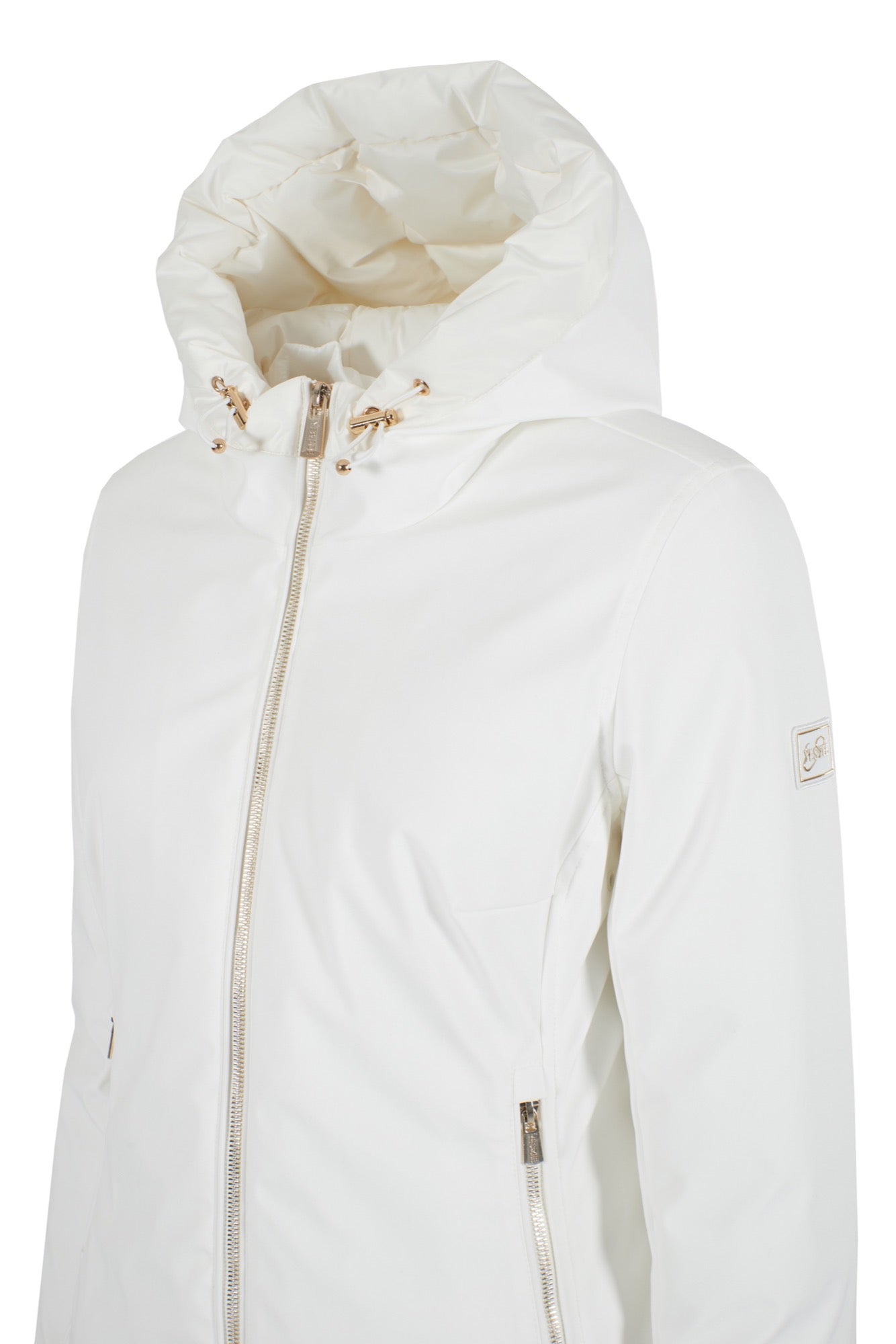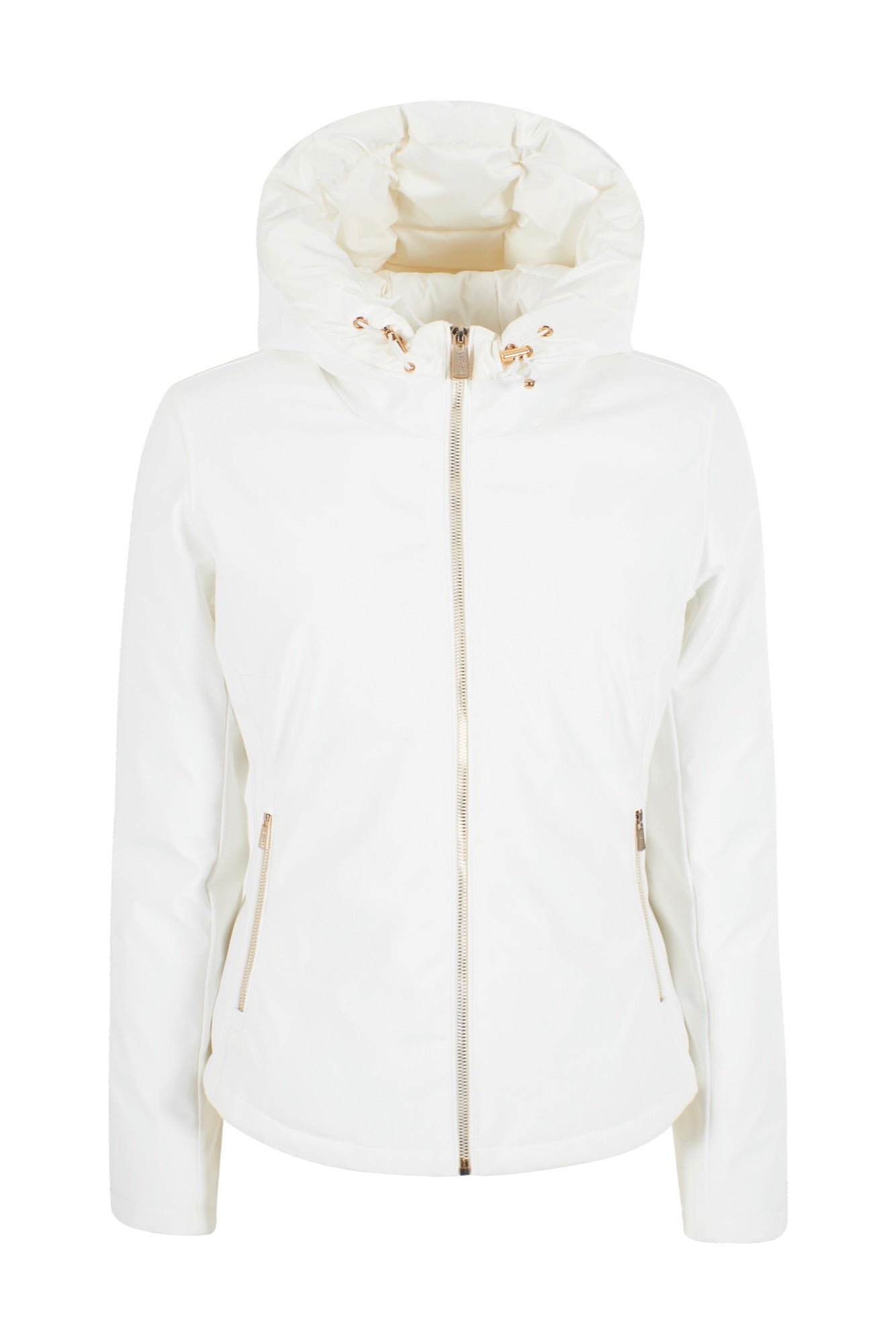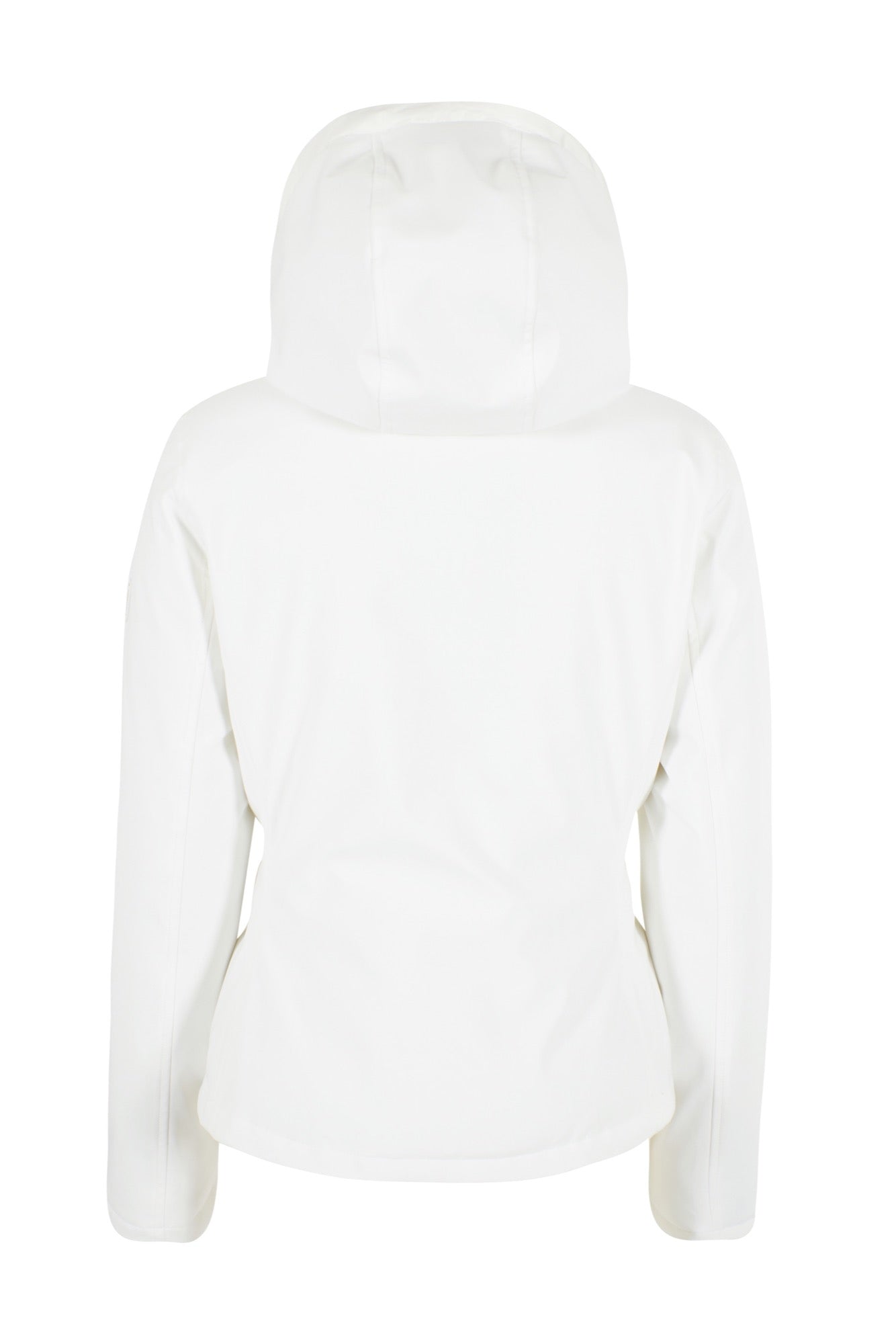 Giubbino corto in softshell con cappuccio.