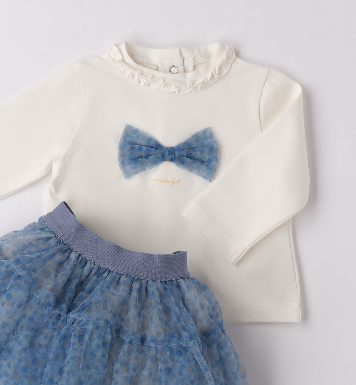 Completo composto da gonna in tulle e maglietta in jersey stretch.