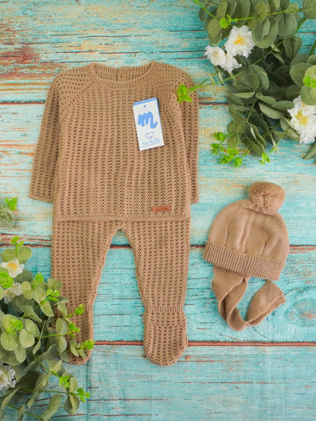 Tutina spezzata e cappellino con pompon.