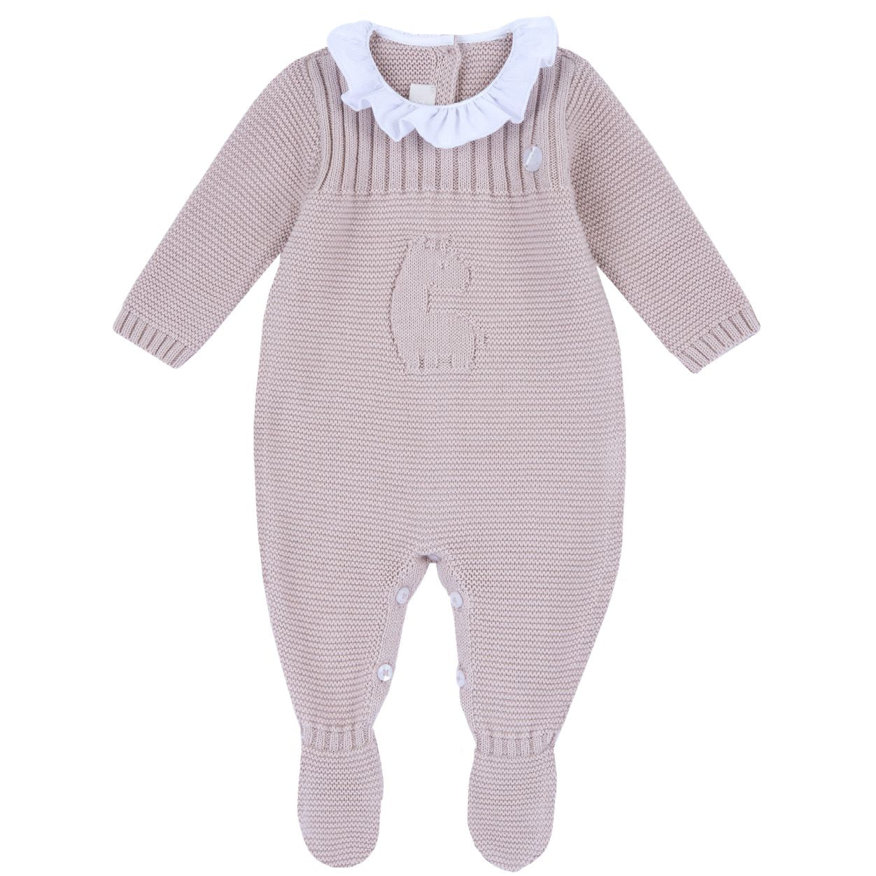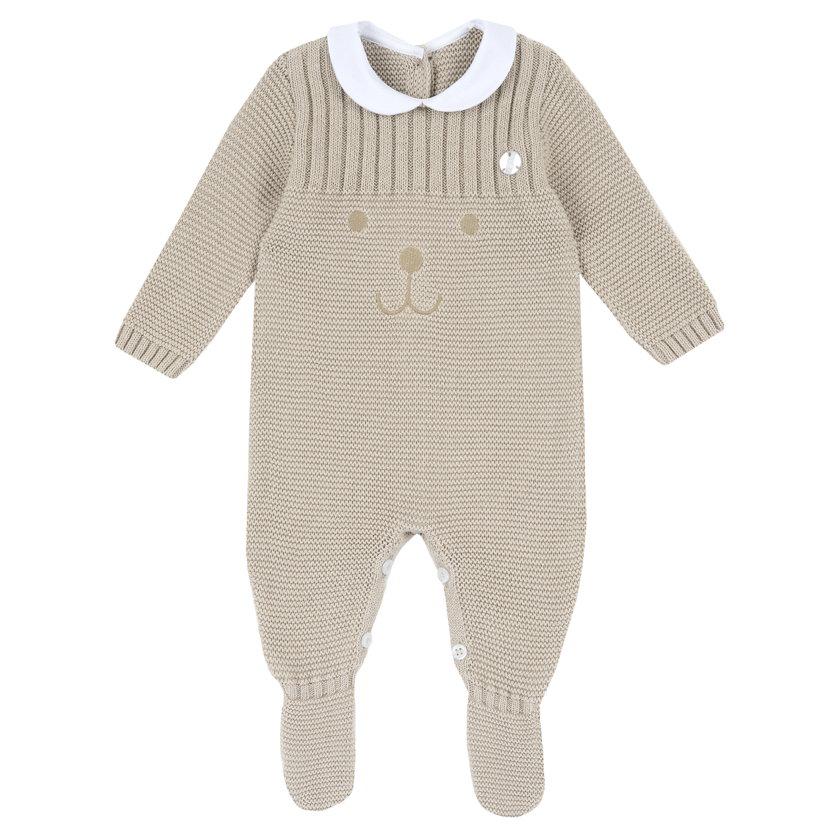 Tutina con piedi in tricot, 100% bio cottone. Apertura entrogamba con bottoncini.